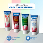 Orasore 4-in-1 Ultimate Dental Care Pack | Red Ayurvedic, Whitening, Salt & Neem, 24x7 Miswak Toothpastes | Free Bamboo Toothbrush | 4 x 100g