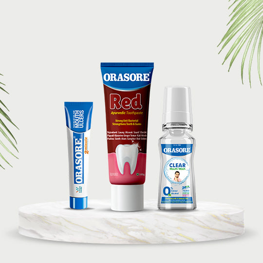 Orasore Red Combo | Mouth Ulcer Gel 12g + Clear Mouth Wash 100ml + Ayurvedic Red Toothpaste 100g
