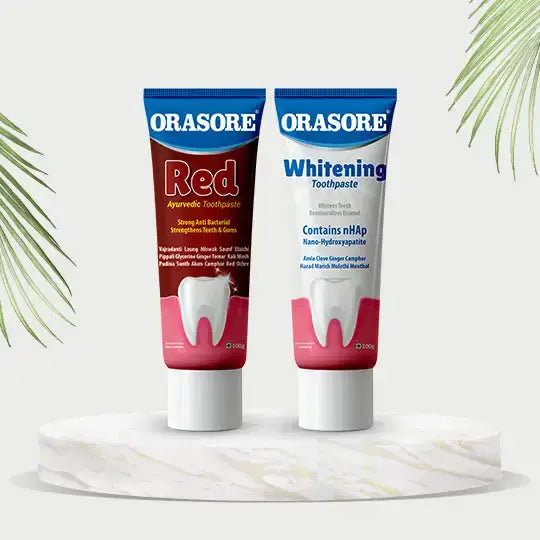 Orasore Toothpaste Combo | nHAp Whitening Toothpaste 100g + Ayurvedic Red Toothpaste 100g