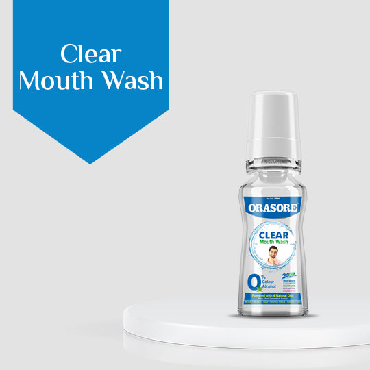 Orasore Clear Mouthwash is 100% Ayurvedic that Kills Bad Breath, Cleans & Soothes Mouth. It is free from colour & alcohol, and improves Oral Health without irritation or burning.