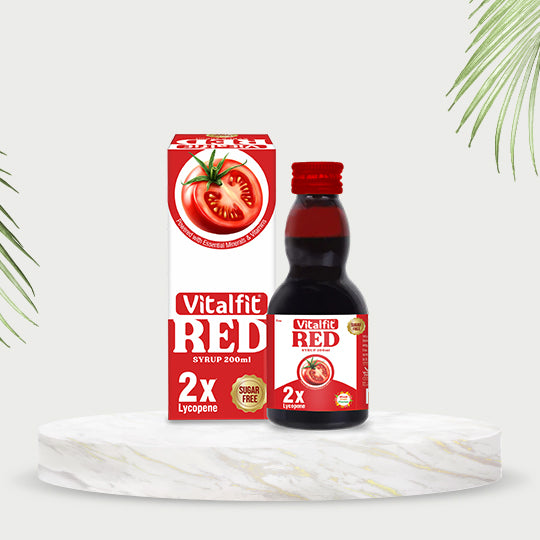 Vitalfit Red Syrup is a 2x combination of lycopene and essential multivitamins and multi-minerals with mixed fruit flavour in Sugar free composition. It aids overall health by supplementing nutritional demand of the body. The ingredients like Lycopene, Magnesium, Selenium, Zinc and Lutein present in this formulation helps to neutralize the harmful free radicals and protects the body from damage caused by them.